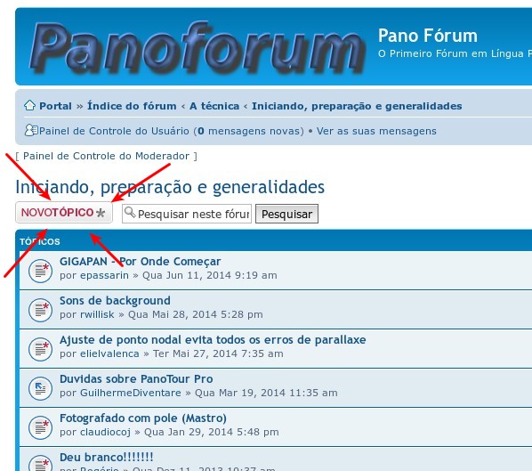 Claro que consegue. Primeiro, a partir da página inicial, por exemplo, você escolhe o tema ou sub-tema que mais se adequa ao que quer postar e clica pra entrar ali: Depois que entra nele tem um botão "Novo Tópico" e clicando nele você cria um novo post: Agora, se você está querendo um novo post dentro de um post, isso não dá. Esse lugar onde postou já é um post, você tem que ir um nível acima para postar um novo post.rfteixeira escreveu:Eu nao consigo postar um NOVO POST nesse fórum???