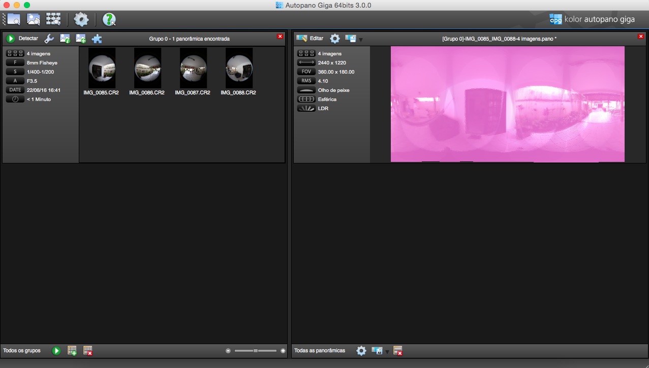 Em resumo, funcionou no PTGui, mas a versão do Autopano usada não era das últimas: 3 e a atual é 4.0.2
