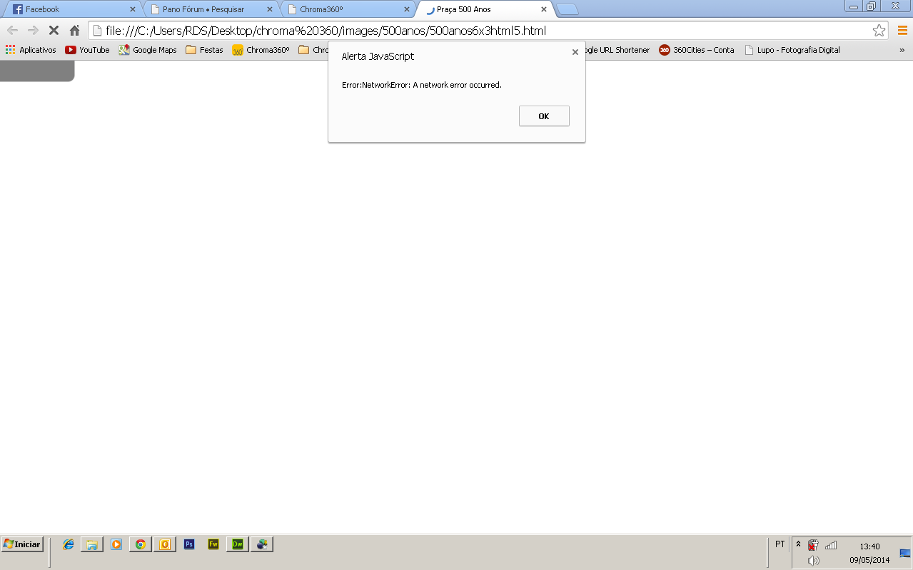 estou tentando criar uma panorâmica no pano2vr standard em html5, mas quando vai abrir no navegador aparece um erro de java script conforme anexo.