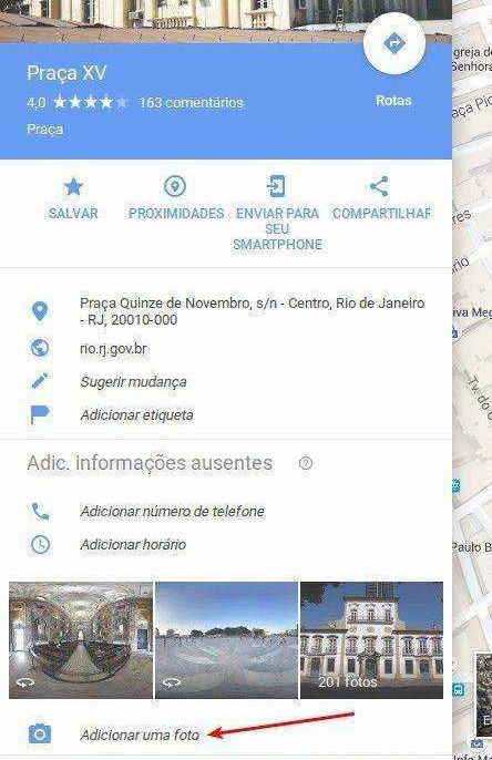 Bom, até aqui falei do acerto da imagem e a grande (última) pergunta era "como publicar". Eu publiquei simplesmente adicionando fotos no Google Maps, e já pude ver minhas fotos disponíveis no street view. Confesso que não estou conseguindo achar a da Enseada de Botafogo, mencionada ali em cima, mas achei uma da Praça XV, que foi a primeira que botei, e ainda estava sem os metadados (ou seja, os metadados não servem pra nada! kkkkkkk).